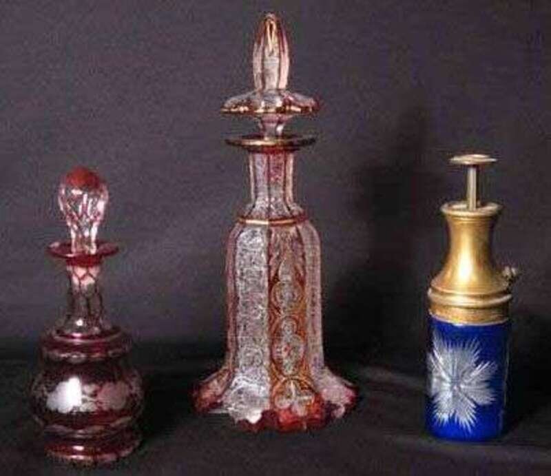 Three piece cut to clear perfume bottles Baccarat and others