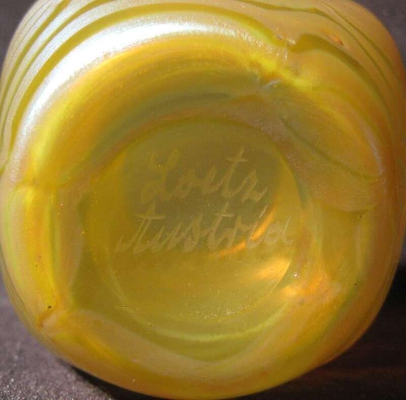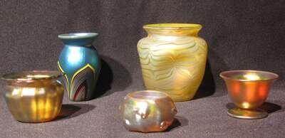 Five small art glass vases by Tiffany, Steuben, Quezel, Loetz and art glass vase