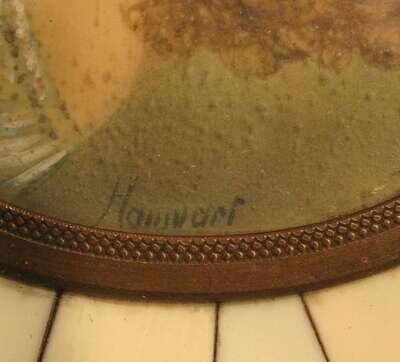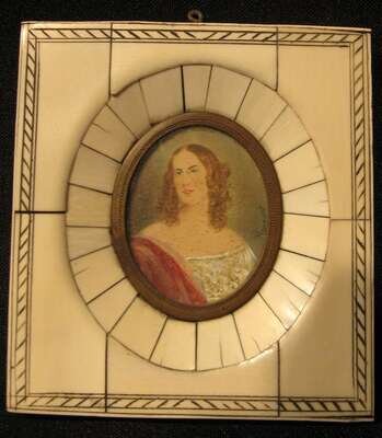 Small oval watercolor portrait miniature on paper