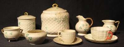 Ten piece Belleek porcelain tea ware group