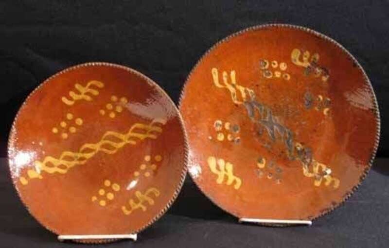 Two decorated redware plates 19th and 20th century