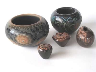 Five contemporary Indian pottery items santa clara and acoma, 20th century
