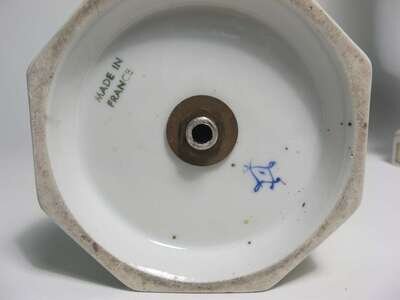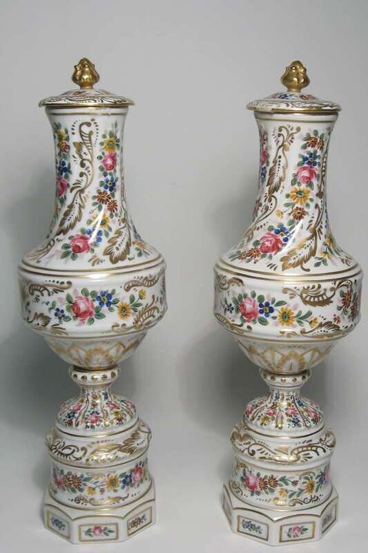 Pair of French porcelain lidded urns with floral decoration. 19th century