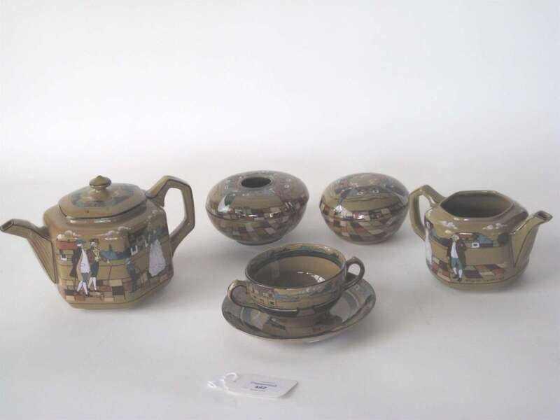 Six pieces of Deldare ware pottery buffalo pottery, buffalo, new york, early 20th century