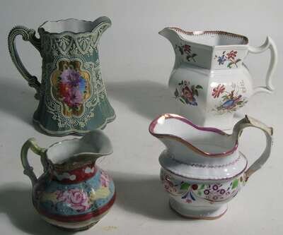 Group of twelve assorted ceramic pitchers and Royal Doulton dessert service and tile 19th / 20th century