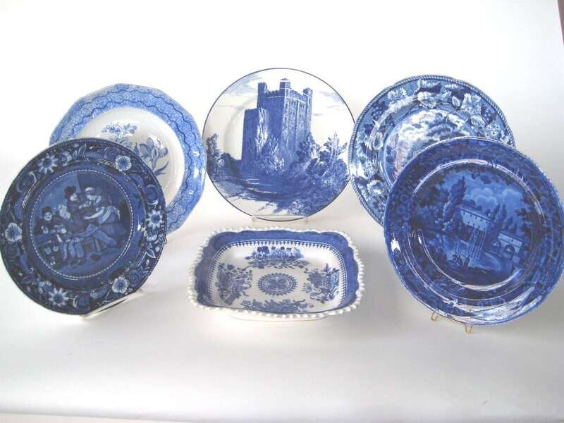 Six Staffordshire blue transfer-printed dishes early 19th century