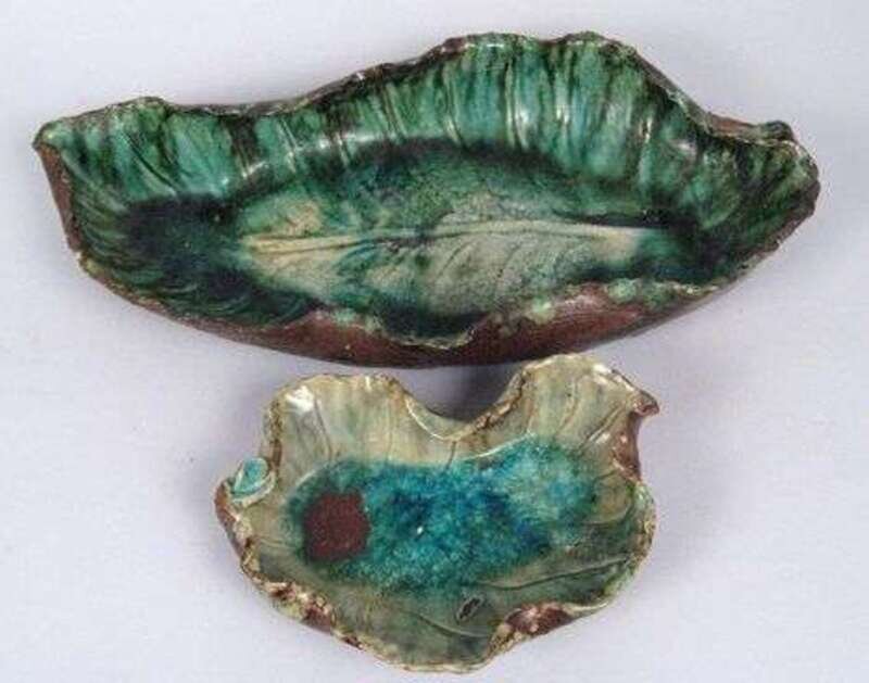 Two green salt glazed artemesia form trays probably japanese 19/20th century