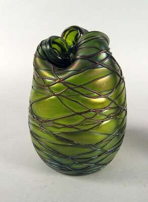 Green art glass vase possibly loetz early 20th century