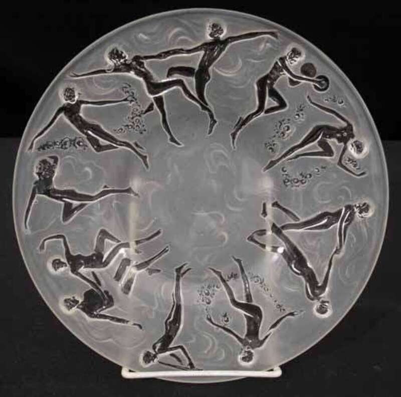Set of four art deco style glass plates possibly consolidated lamp and glass co., mid 20th century