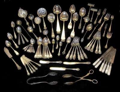 Fifty one piece assorted sterling silver flatware together with twenty-seven piece silverplate flatware
