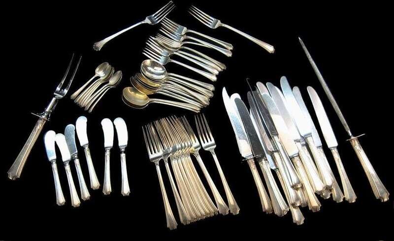 Sixty-one piece sterling silver flat table service wallace; introduced in 1932