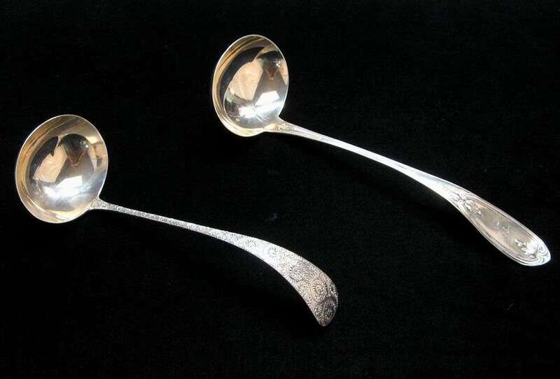 Two sterling silver soup ladles 19th/20th century