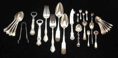 Thirty-two piece sterling, coin, and 800 silver flatware