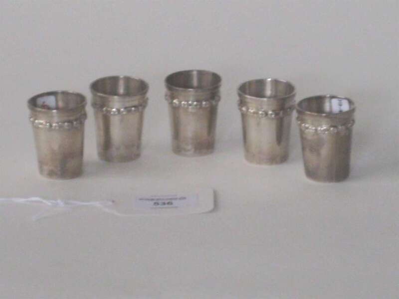 Five Taxco sterling shot cups and Gorham three light candelabra mexico, 20th century