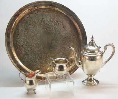 A three piece sterling coffee service and silverplate tray gorham and other maker