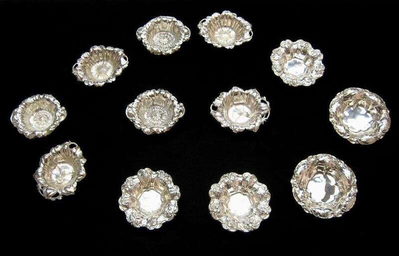 Twelve assorted sterling silver individual nut dishes first third of the 19th century