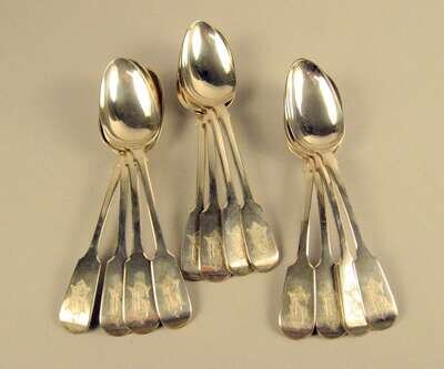 Assembled set of twelve Victorian sterling silver tablespoons various dates and makers