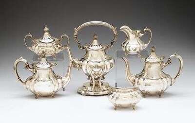 Sterling silver six piece tea & coffee service by fisher, 20th century