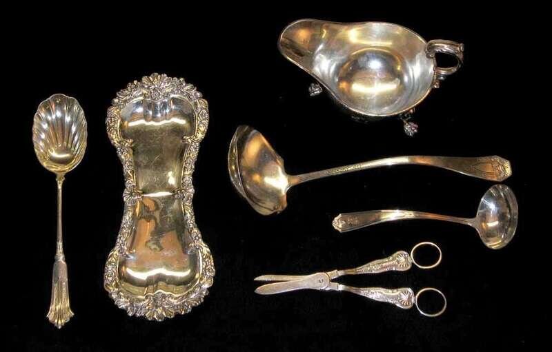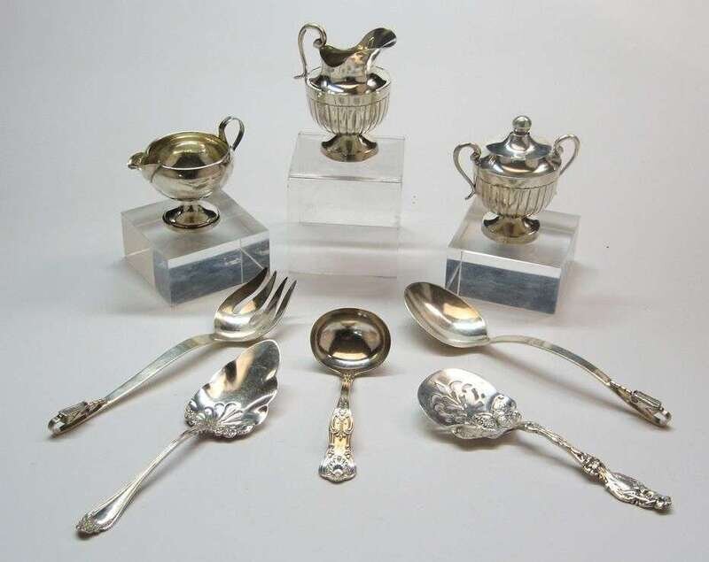 Fifteen piece group of assorted silverplate and sterling serving pieces and table articles