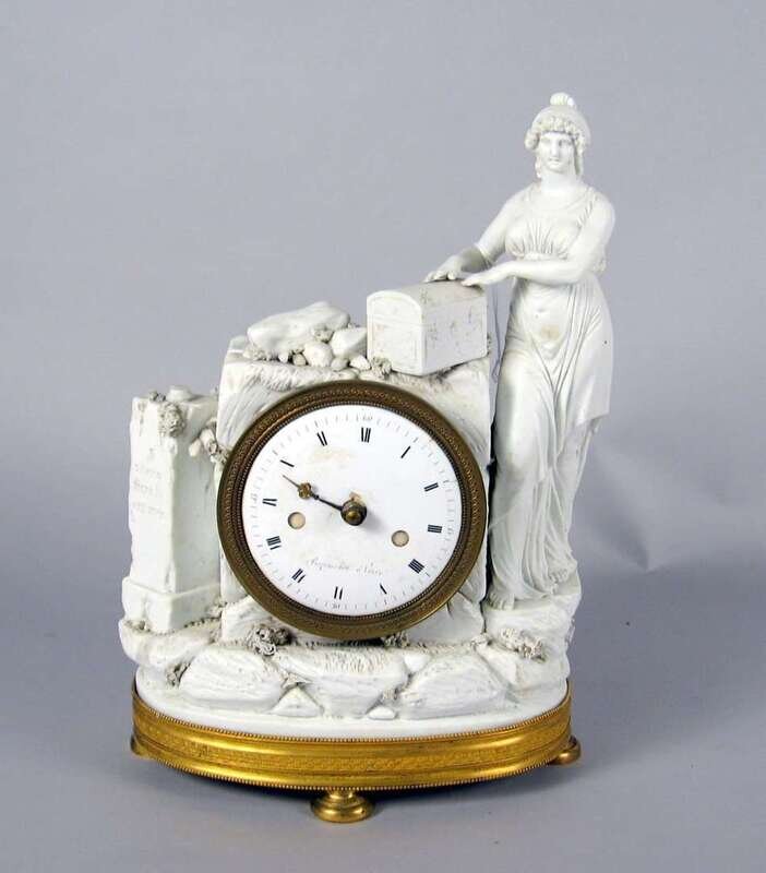 Good Empire bisque and gilt bronze mounted mantle clock circa 1810