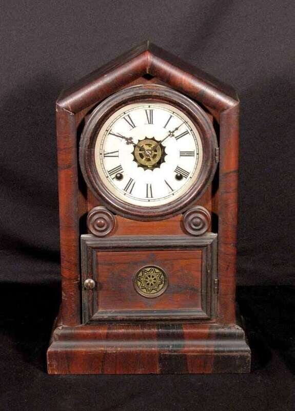 Faux steeple rosewood eight day shelf clock with alarm wm. l. gilbert clock co., 19th century