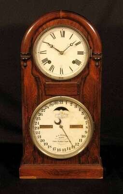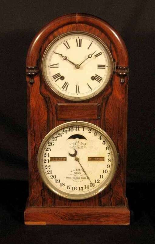 Rosewood round top calendar shelf clock ithaca clock co., h.b. horton patent, circa 1874