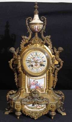Louis XV style porcelain and gilt brass mantle clock 19th century
