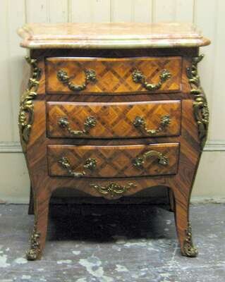 Rococo style marble top and parquetry petit commode