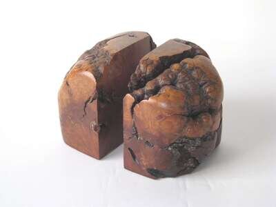 Pair of burled walnut bookends in the manner of george nakashima (1905-1990)