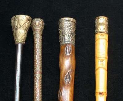 Group of four walking sticks with brass and silver plated grips 19th/early 20th century