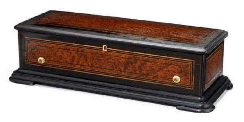 Swiss burr walnut and ebonized music box 19th century