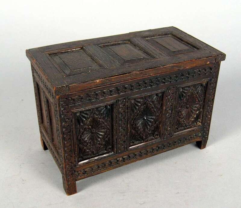 Miniature English carved oak coffer