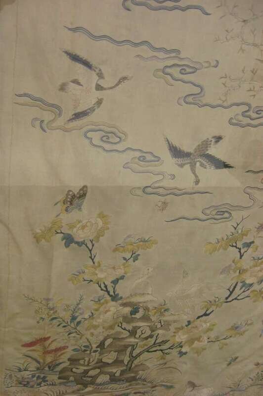 Chinese silk textile, framed and glazed