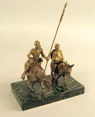 Continental silvered bronze figure group don quixote and sanchez