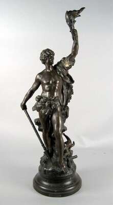 Bronze figure , 'Le Signal' after louis auguste moreau (french,1855-1919)