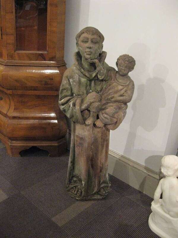 Carved sandstone figure of Saint Anthony and Christ