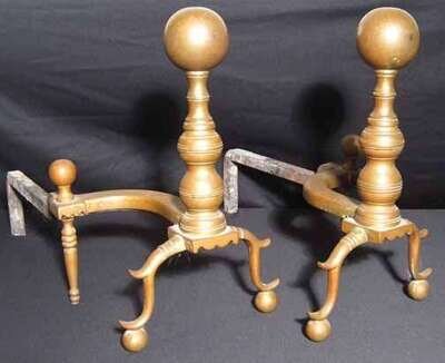 Pair of brass "ball" top andirons