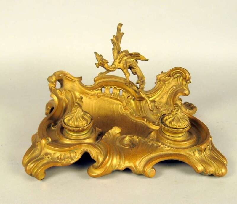 French rococo style gilt bronze inkwell 19th century