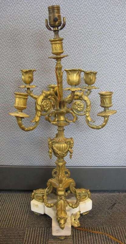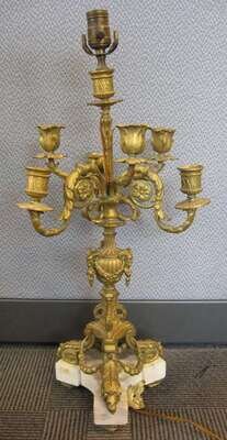 Louis XV gilt bronze and white marble six arm candelabrum late 19th century