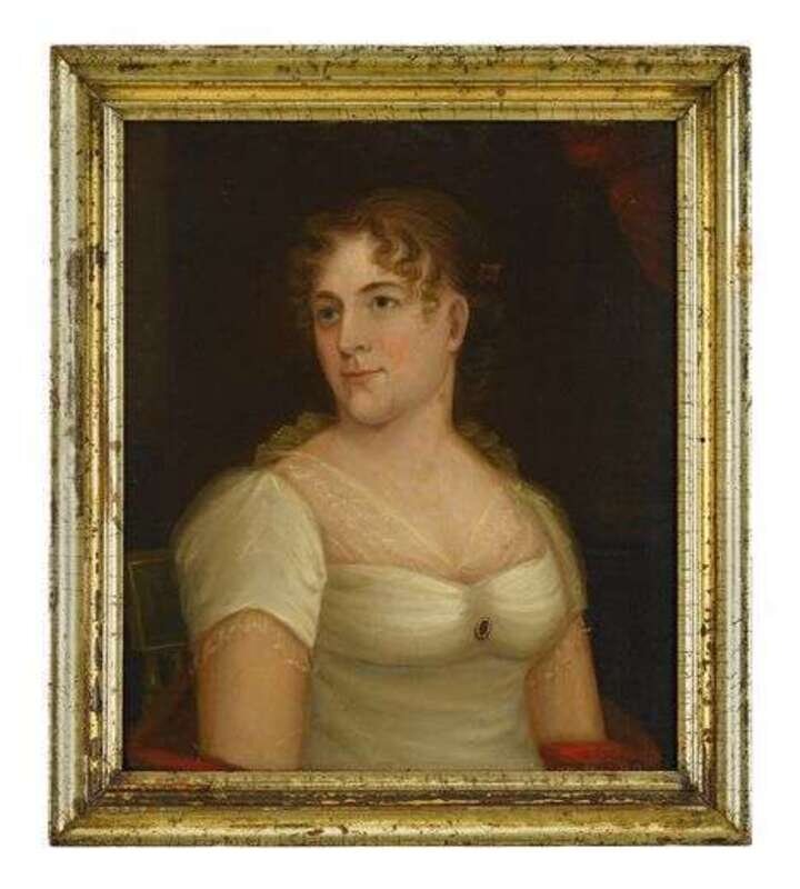 AMERICAN SCHOOL - PORTRAIT OF A LADY IN WHITE DRESS ca. 1830