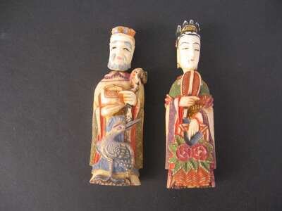 Pair Chinese elephant ivory and polychrome snuff bottles