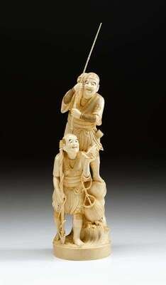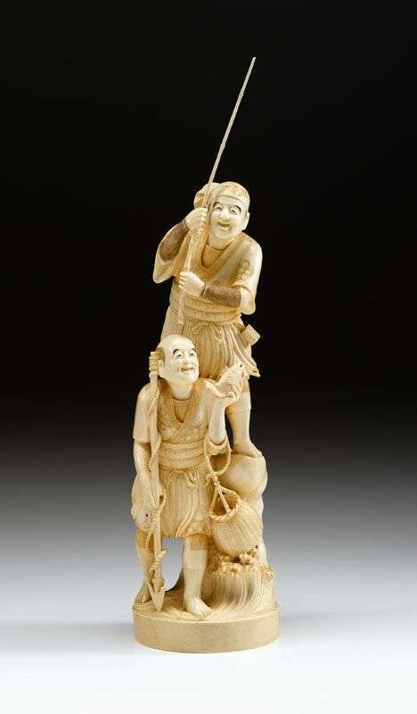 Fine and large Japanese elephant ivory figure signed red tablet to base, late 19th century