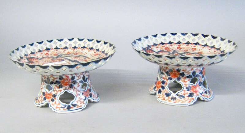 Pair of Japanese imari reticulated porcelain tazzas 19th century