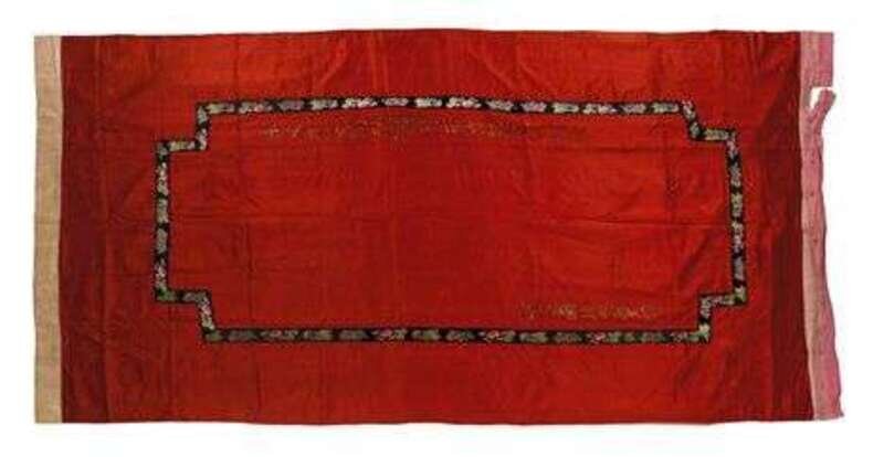 Highly unusual Chinese red ground and calligraphy painted banner late qing dynasty