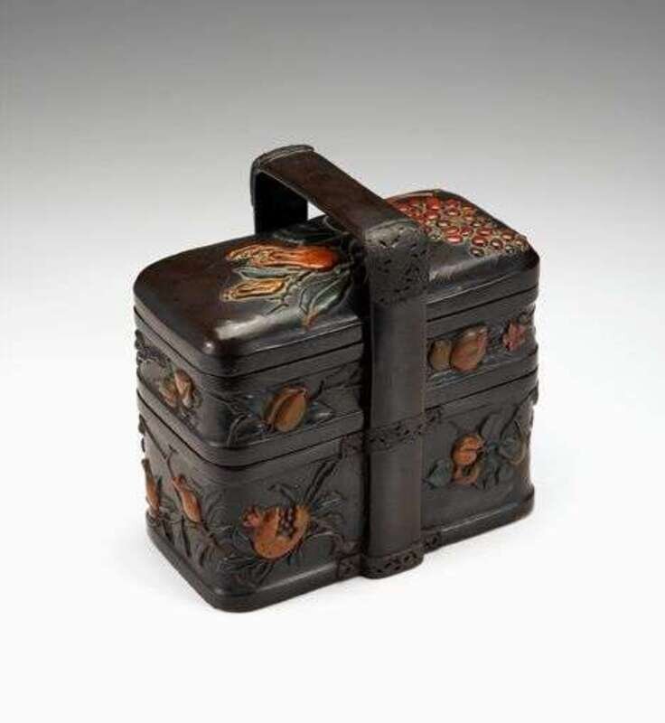 Unusual Chinese lacquer two tier picnic box qing dynasty