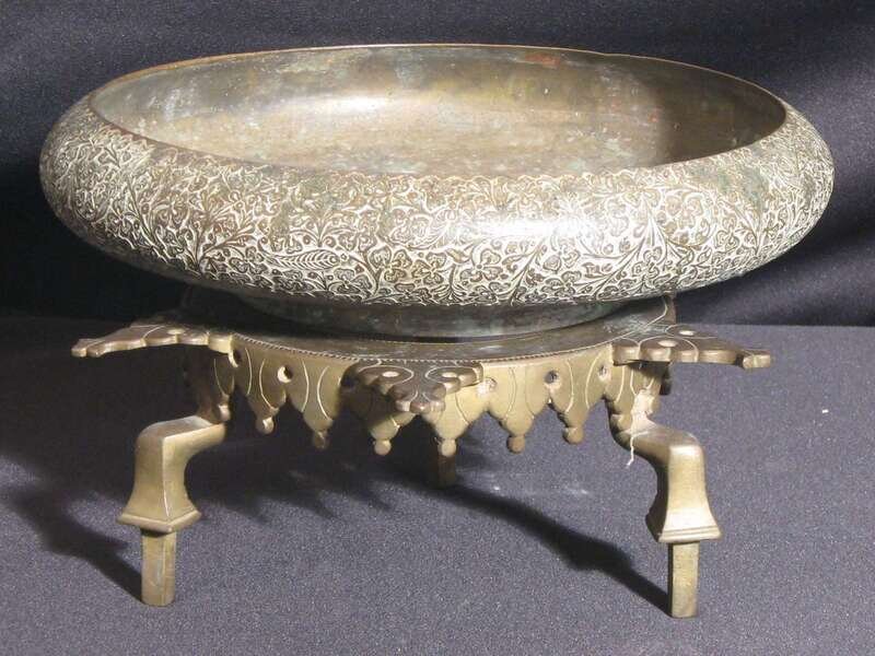 Large Persian bronze brazier on stand 19th century
