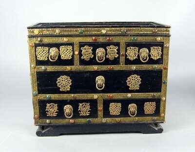 Persian gilt metal filigree and semi precious stone mounted wood box