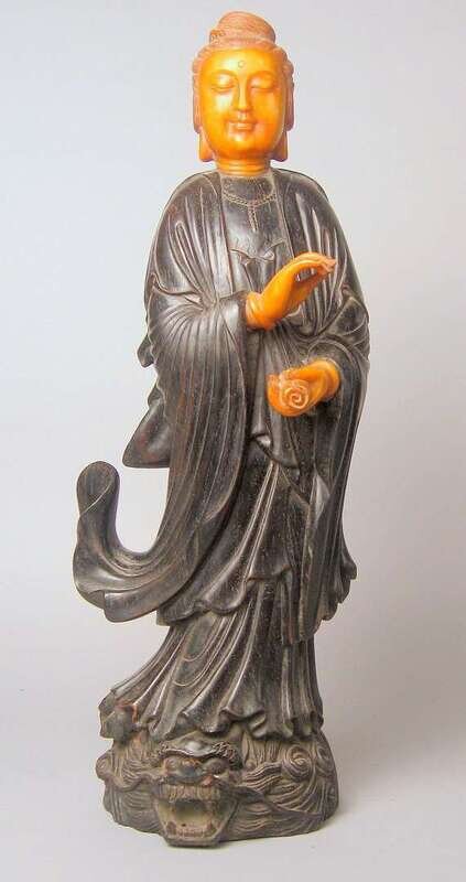 Large Chinese hardwood and stone model of Quanyin 20th century