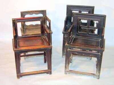 Pair of Chinese yumu square back chairs, and two other chairs qing dynasty