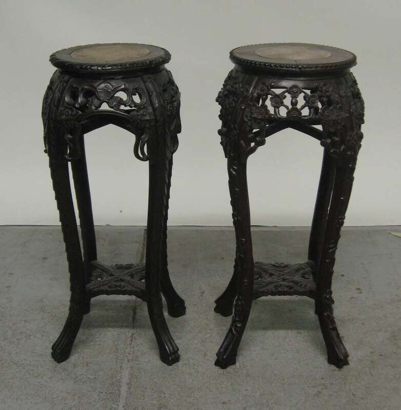 Pair of Chinese carved hardwood marble top tabourets 19th/20th century